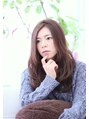 ローレイヤーロングスタイルをベースに、表面に少しレイヤーを入れて動きをプラス。フロントは顎下でCUT。全体が重くなり過ぎないように、アイロンでナチュラルカールをプラスして。