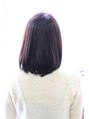 重めのワンレングスベースのボブに少し広めの前髪を目元ギリギリで切りました。目が大きく見えて目力アップのスタイルです!!色もダークブラウンにピンクを混ぜて、ツヤツヤのカラーにしました!