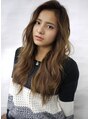 前髪をかきあげ、32mmコテでランダムにまいたあとランダムにほぐした外国人風のグランジロングスタイル!!