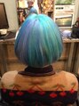 薄いパープルと水色をランダムに入れてます。交じり合った感じがすてきです☆ブリーチで白まで近づけてからのカラーになります!