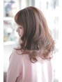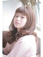 眉上のバングがかわいい愛されフェミニンロング。トップにレイヤーを入れて弾むセミロングに。ランダムなカールと内巻きの顔周りで子顔効果も♪カラーはマット系のルミエールカラー。外人風の透明感あるカラーリング♪マッシュバングでオシャレ度アップ!