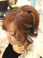 ルーズアップアレンジ!!毛量の多さをいかし、ゆるふわカールで雰囲気をアピール。