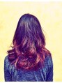 レイヤーカットで毛先に動きを出して、大きめのカールでパーマをあててルーズな感じに!カラーはルビーバイオレットで毛先は赤を強めにいれて、ほんのりグラデーションにしました!!