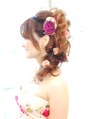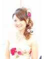 いつもご来店ありがとうござます。本日は妹さんの結婚式にご出席されるそうなので、華やかでエレガントなヘアスタイルにデザインしました。ドレスに合わせた髪飾りも素敵です☆