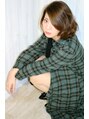 ベースはあごラインの前下りボブ、トップに動きが出るように、レイヤーを入れてパーマもプラス根元から毛先にかけてグレーのグラデーションカラーで、立体感を。