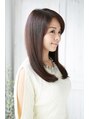 顔周りのレイヤーと斜めバング、ベージュ系のカラーがストレートでも雰囲気を柔らかく見せてくれます♪普段巻かない方にオススメのスタイルです。【ウルカ川口】