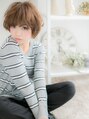 目の上ギリギリのラインのマッシュ。トップにボリュームを出しつつ、ランダムに散らして、丸いシルエットに軽さをプラス。ボーイッシュなのにガーリーな、甘辛MIXスタイルの完成!無造作なリラックスボブですが、クラシカルやモードなヘアアレンジも楽しい♪