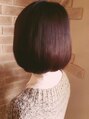 誰もが憧れるシンプルなボブスタイル!アンダーに重さを残しつつ、トップは中をえぐるようにカットしてモードになりがちなボブにナチュラルなふんわりと丸みが出るすたいるに…カラーは、ラズベリー系のピンクで深みのある暗髪に仕上げてます。