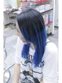 黒からショッキングブルーのグラデーション最低でもブリーチは2回必要です色を入れるところまでで3回の施術長さや染める前の状態で料金が変わってくるので要相談!人と被ったカラーをしたくない人はお問い合わせ待ってます♪
