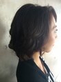 えり足は内側より表面を短めにして丸みをつけ重ためグラデーションボブにしました。前髪は流すように、サイドはランダムに巻いて仕上げました。