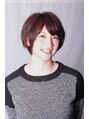 顔周りのデザインにこだわったショートスタイル。カラーはアッシュブラウンをベースにトップにはベージュ系のハイライトを、顔周りにはブラウンのローライトを入れ立体感をプラス。
