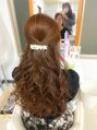 洋装 サイド ツイスト 大きな カール ハーフアップ ヘアアレンジ