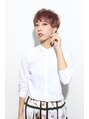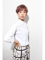 小顔スタイルに合うショートスタイル!!パープルの透明感あるカラーに無造作なスタイリング。大人かわいい雰囲気を出せると思います。ショートには大きめのイヤリングで全体のバランスも似合わせました。