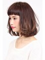 ほぼワンレングスのボブベース。バングは眉上ラインで大人かわいさを表現。ほんのり浮き上がる毛束の抜け感でエアリーな質感に。