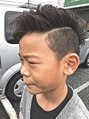 サイドとバックはバリカンで上は十分な長さを残して少し強めのパーマに仕上げました!ツーブロックと上のながさのあいだにラインをいれてます!幼いながらもいかつくしあげてます!これはボクシングでは相手に強気で居れます!