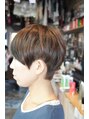 見た目にわからない程度の2ブロックのショートにしています。フロント部分に暗めのカラーリングを施すことによって頭の形も綺麗に見せることができます。襟足は首元に沿うようにカットしています。