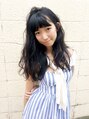 ワンレンベースにローレイヤーでカットしてます。カラーは地毛の黒髪をいかしてうっすら赤みを取り除くダークグレージュをON!!重くなりがちなダークカラーのロングにトップから毛先まで外国人風ミックスパーマをかけてふんわり、やんわり感を+してます。