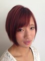 個性的なシナモンルージュカラー^o^前下がりボブ