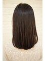 全体的には重めで、顔周りにレイヤーを入れたスタイル全体的に矯正を当てて、毛先にカールを作っている大人女子向け、大人愛されスタイル