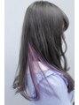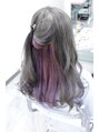 アッシュよりも濃いめのグレイッシュカラーが人気です☆内側を薄いピンクに染めてムラサキのメッシュを入れました♪施術行程は黒髪からスタートで4回に分けてブリーチからメッシュまでですその他特殊カラーの相談受け付けてます