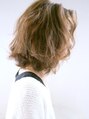 外ハネスタイルなカジュアル感のあるフェミニースタイルに。ウエーブ感がパーマスタイルにも活かしています。