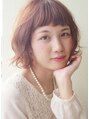 ヌーディーなベージュにほんのりピンクを入れる事で柔らかい雰囲気に。短いバングが大人っぽい可愛いらしさに。