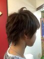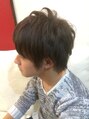 横に広がりやすい髪質なので、なるべくサイドは抑えトップに動きが出るようにしました。1カ月前にかけたパーマを活かして、束感意識したカットをしました。サイドは、少し2ブロックになってます。