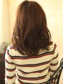 全体に大きめのカールでアンニュイ感を出しました。ローレイヤーで重さを強調してパーマでニュアンスを出すことでリラックス感もアップ。中間からランダムなカールを作り毛先を逃がす。輪郭を華やかに彩り、大人らしくやわらかい印象が欲しい人にお勧めです