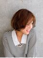 Cut /二宮 ランダムな毛先のカール感でぬけ感を出した、がんばりすぎない、大人のためのボブスタイル。Color /岩本 全体はダークアッシュブラウンをベースに、顔周りに12レベルのベージュアッシュでハイライトをブレンド。さりげなく色気漂う雰囲気に。