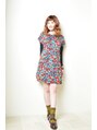 厚めのショートバングで大人カワイイ頑張り過ぎないスタイル。大きくゆるめのウェーブは程よい大人の抜け感を演出します。カラーリングは新色ノーブルプラムでツヤツヤに、さらに3Dカラーで立体感を出してます。
