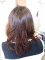 クセを最大限に生かしたレイヤースタイルでパーマをあててる風に仕上げました。クセが強い前髪のみストレートをあて、あとは、ナチュラルに揺れるようなカールを出すようにブローをしていきます。