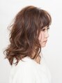 段のついてないワンレングスでも動きが出せるように、重軽を目指してスライドカットしています。ロングロットでランダムなスパイラルカールを緩やかにつけ、カラーはオレンジ系ブラウンで肌色をキレイにみせて。