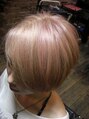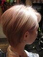 耳かけショートスタイルにカットして、ハイトーンのミルクティーベージュに薄いピンクをコーティングするとイチゴミルクティーカラーのできあがり♪