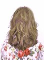 カット*鎖骨レングスのローレイヤーベースにトップには動きを出すためのレイヤーをいれます。 *カラー*10レベルのプラムブラウン。*パーマ* 自然な動きをつけるためにランダムに巻いていきます。トップもゆるく巻くのがポイントです。