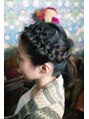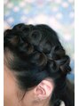 ロングウェーブベースのアレンジバリエーション☆リボン編み込みを施したサイドバックシニオンのご紹介♪キュートなリボン、ヘアアクセサリーより存在感あります。