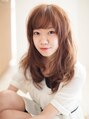 カールの重なりとフェスラインのレイヤーで小顔効果バツグンなセミロングスタイルです