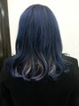 襟足にブルーホワイトカラーを入れて、冬の寒さによく映える雪の結晶のように見立てたカラー。ブルーが冷たさを演出!