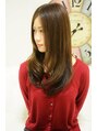 大人かわいいナチュラルカールなロング。顔を包み込むようなレイヤーで柔らかな動きをつけます!カラーは明るすぎない暗髪のパールグレージュです。