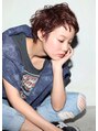長短をつけたショートスタイルはウェットな質感でも動きのあるスタイル。シャープな印象になりすぎないように前髪の束感は大きめな短ダムな束感に。
