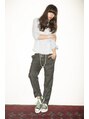 重ための前髪をpointにして全体はほどよいレイヤーで動きをつけたcut。coolだけどちょっぴり甘さもふくめたかっこいいけどかわいさもあるスタイル。