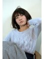 より透明感のあるスタイルへ。抜け感 マッシュ 艶 リラクシー ラウンドボブ マニッシュ エッジ モード ナチュラルセミディ モーブ センターパート 甘めバング