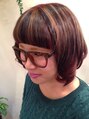 Aラインのくせ毛風ボブヘアー。ピンク系をベースにローライとハイライトでより立体的に。外国人風モードボブに☆