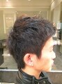 EXILE SHOKICHIのヘアースタイルをイメージして作りました。トップにツイストパーマをかけ適度な束感とハード感を表現。男気溢れるショートスタイルで爽やかさUP!