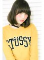 厚めバングで小顔効果、コケティッシュなボブ。落ち着いたマーメイドアッシュで艶感抜群。黒髪でもOK。やや重めスタイルでくせ毛風な方にもオススメ。毛先にはゆるふわパーマで大人かわいいマッシュ風な感じに。