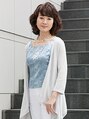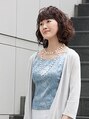 トップが短くなりすぎないようにカットし、毛先に少し重さを残したミディアムボブ。カールがきれいに出るよう毛量調整しました。ベースはブラウン系のメルティショコラで、全体に細かくハイライトを。髪全体が柔らかく動くようにウェーブをつくりました。