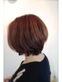 前髪長めのスタイルです。顔の形、頭の形が良く見えるようにカット。ハイライトで軽さと動きUP。