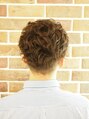 サイド、バックは6ミリで刈り上げ、完全にツーブロックなスタイル。元々の髪が直毛で動きがつきにくく、セットしづらい髪質なので、トップが後ろに流れるようにパーマをかけました。