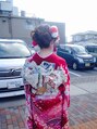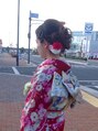 成人式のヘアセット&着付けで、フロントからサイドにかけてを編み込みを入れて大きめの飾りをサイドと小さめの飾りをバックサイドにつけてみました。