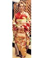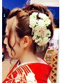 真っ赤な振袖に負けない様に髪もメイクもいつもより派手に。目尻に足したワインカラーで色っぽさを、口元のピンクで少女のあどけなさを、振袖と同じ暖色系でまとめました。
