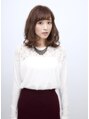 王道のAラインに大人の上品さを毛先にパーマをかけることで演出。誰もが似合うミディアムスタイル。